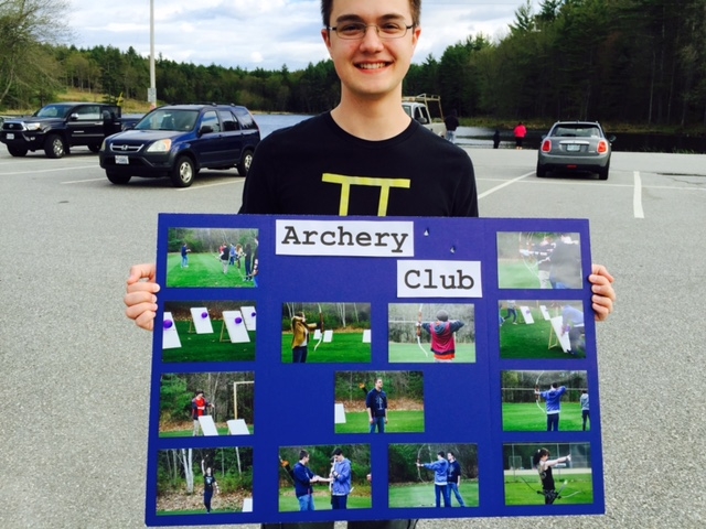 This podcast is a little different as Coach Lucy is a guest on the show and she is being interviewed by Cameron who is a senior in high school and who is also a level 1 archery instructor. Cameron created and ran an archery club at his High School and he is going to take the level 2 instructor class this summer. I was very honored to be a guest on Cameron’s podcast and that is why I decided to share the interview with you. In the picture below, podcast host Cameron is holding up a tri-fold of pictures of his archery club.